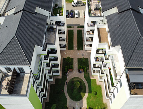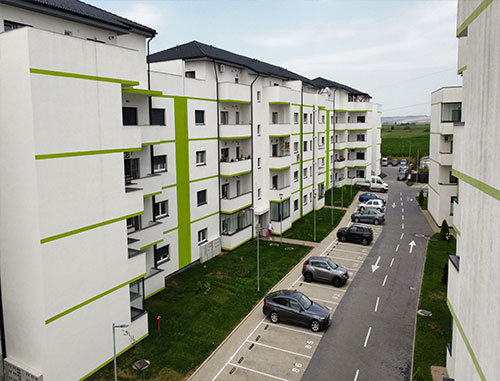 Ansamblul rezidential este compus din 16 imobile de locuinte care vor genera la finalizare peste 450 de apartamente cu 2 si 3 camere.